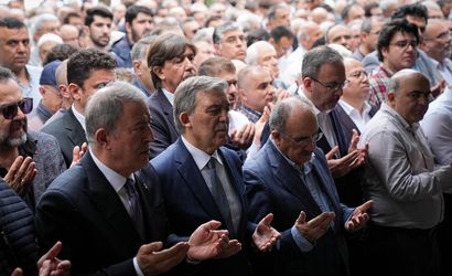 11. Cumhurbaşkanı Abdullah Gül (sağda), vefat eden dayısı Prof. Dr. Ahmet Tahir Satoğlu'nun İzmir'deki cenaze törenine katıldı. Gül'e, TBMM Milli Savunma Komisyonu Başkanı Hulusi Akar (solda) başsağlığı diledi.