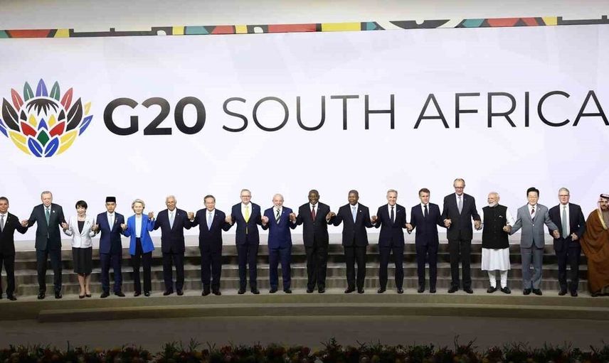 Zirvenin ana teması olan 'Dayanışma, Eşitlik, Sürdürülebilirlik' çerçevesinde bir araya gelen liderler, Expo Centre Nasrec'te kurulan özel platformda aile fotoğrafı için buluştu. Çekim, Güney Afrika Cumhurbaşkanı Cyril Ramaphosa’nın ev sahipliğinde gerçekleştirildi.