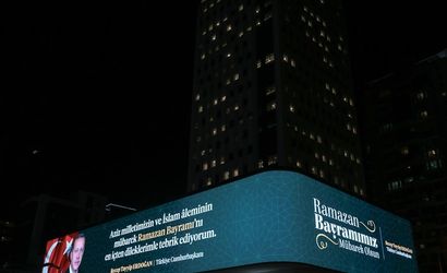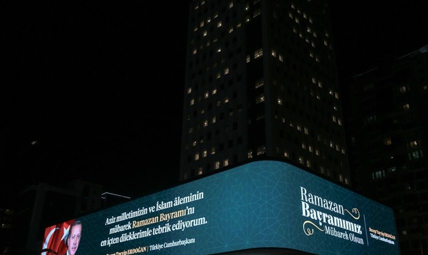 Cumhurbaşkanlığı İletişim Başkanlığının dijital ekranında, Cumhurbaşkanı Recep Tayyip Erdoğan'ın Ramazan Bayramı mesajı yayınlandı.
