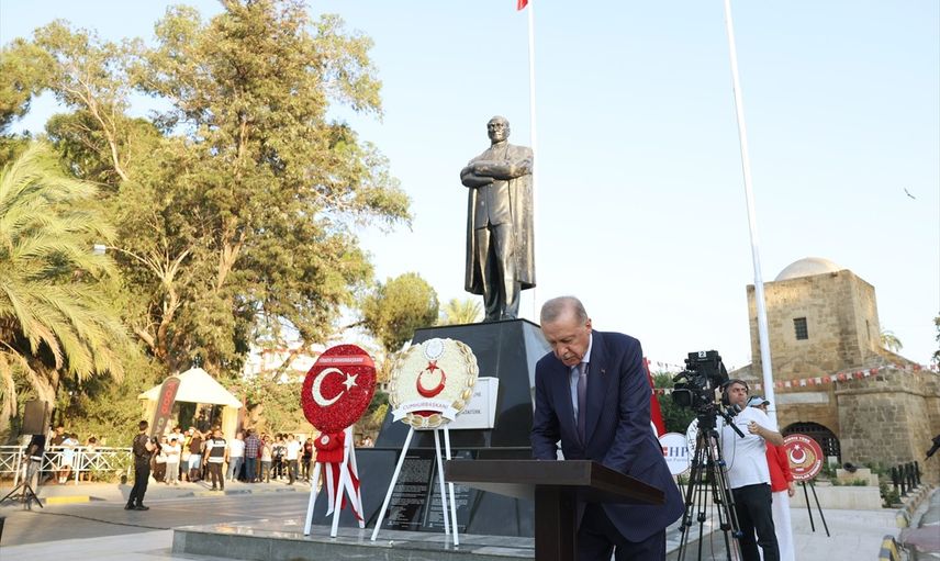 Cumhurbaşkanı Recep Tayyip Erdoğan, Lefkoşa'da, Kıbrıs Barış Harekatı'nın 51. yıl dönümünde, 20 Temmuz Barış ve Özgürlük Bayramı törenine katılarak Atatürk Anıtı'na çelenk sundu.