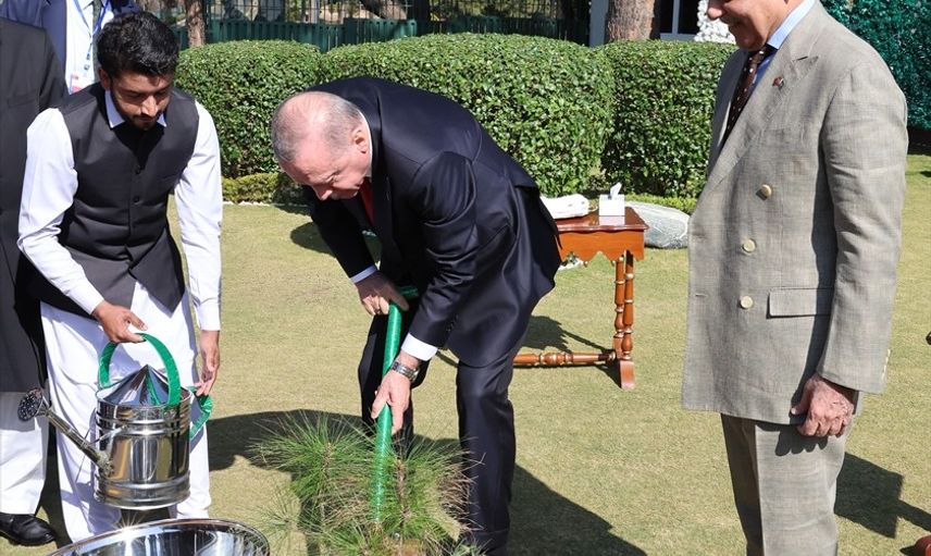 Tören kıtasını denetleyen Erdoğan, askerlerle selamlaştı. Ardından, Erdoğan ve Şerif, fidan dikiminin ardından Pakistan Hava Kuvvetleri tarafından gerçekleştirilen "Saygı Uçuşu"nu izledi.