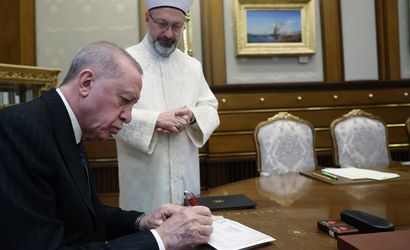 Erdoğan, Diyanet İşleri Başkanı Ali Erbaş’ı kabul ederek, kurban vekaletini Türkiye Diyanet Vakfı'na verdi. Bu vesileyle, bağış makbuzunu da imzalayarak, kurban kesimi için gerekli işlemleri tamamladı.