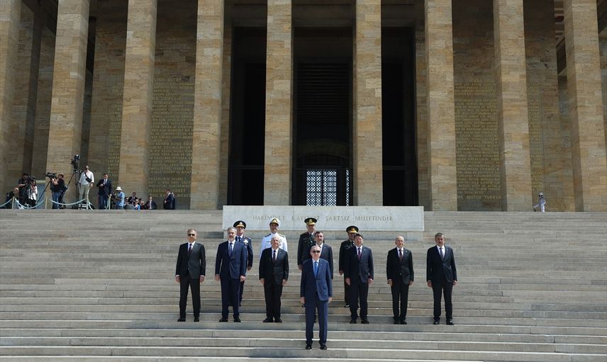 Cumhurbaşkanı Recep Tayyip Erdoğan başkanlığındaki Yüksek Askeri Şura (YAŞ) üyeleri Anıtkabir'i ziyaret etti. Erdoğan'ın Aslanlı Yol'un başındaki yerini almasının ardından başlayan törene, Cumhurbaşkanı Yardımcısı Cevdet Yılmaz, Adalet Bakanı Yılmaz Tunç, Dışişleri Bakanı Hakan Fidan, Hazine ve Maliye Bakanı Mehmet Şimşek, İçişleri Bakanı Ali Yerlikaya, Milli Eğitim Bakanı Yusuf Tekin, Milli Savunma Bakanı Yaşar Güler, Genelkurmay Başkanı Orgeneral Metin Gürak, Kara Kuvvetleri Komutanı Orgeneral Selçuk Bayraktaroğlu, Deniz Kuvvetleri Komutanı Oramiral Ercüment Tatlıoğlu ve Hava Kuvvetleri Komutanı Hava Orgeneral Ziya Cemal Kadıoğlu katıldı.