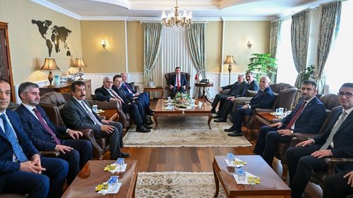 Cumhurbaşkanı Yardımcısı Cevdet Yılmaz, Erzurum Valiliği'ni ziyaret ederek önemli isimlerle bir araya geldi.