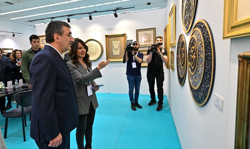 Cumhurbaşkanı Yardımcısı Cevdet Yılmaz, Diyanet İşleri Başkanlığı ve Türkiye Diyanet Vakfı tarafından ATO Congresium'da düzenlenen "Uluslararası İslam Sanatları Fuarı"nı ziyaret etti.