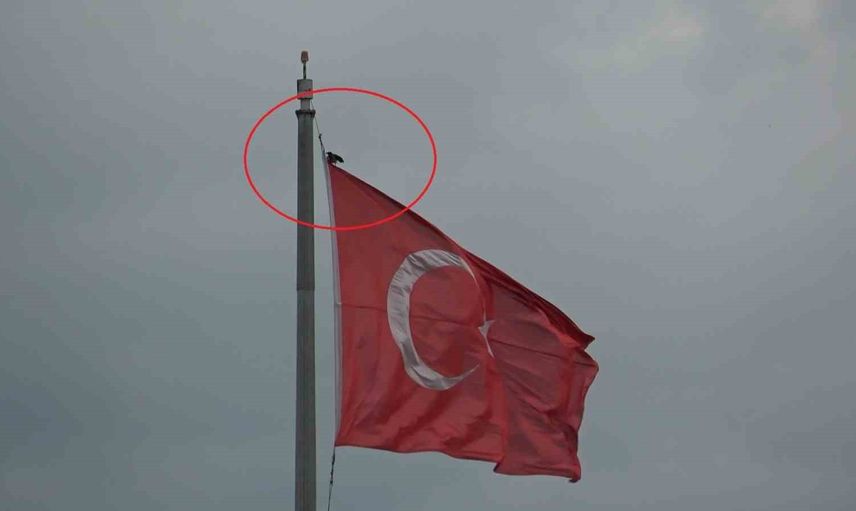 Cumhuriyet Meydanı'nda Karganın Türk Bayrağı Israrı