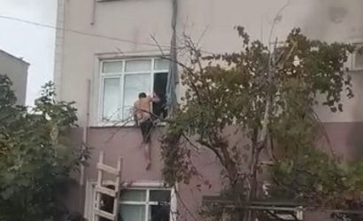 Çevredekilerin cep telefonu kameralarına yansıyan görüntülerde, üst katlarda mahsur kalan bazı işçilerin birbirine bağladıkları çarşafları pencereden sarkıtarak aşağı indiği anlar yer aldı. Polis ekipleri, olayın ardından kaçan şüpheli R.Ö.'yü yakalamak için çalışma başlattı.