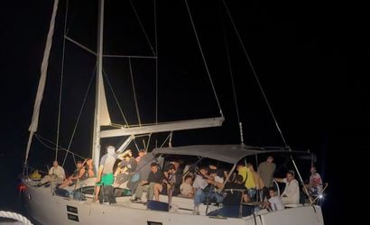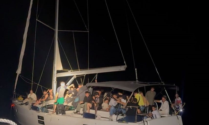 Muğla'nın Datça ilçesi açıklarında motor arızası nedeniyle sürüklenen yelkenli teknedeki 77 düzensiz göçmen kurtarıldı.