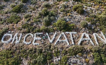 Muğla'nın Datça ilçesinin simgelerinden biri haline gelen 'Önce Vatan' yazısı, zamanla güneş, rüzgar ve yağışın etkisiyle soldu. Durumu fark eden İskele Mahallesi sakinleri, harekete geçen 20 gönüllü genç ile birlikte yazıyı yenilemek için çalışma başlattı.