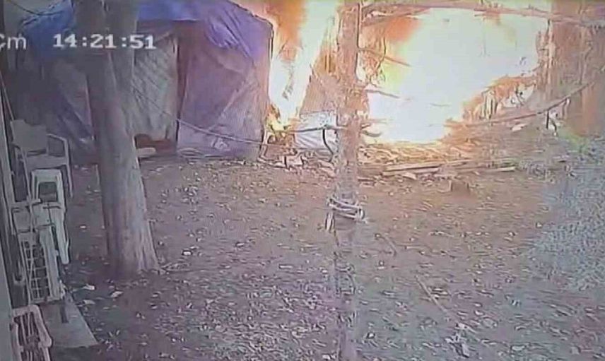 HATAY’IN DEFNE İLÇESİNDE ÇADIRDA ÇIKIP PREFABRİK KONTEYNERA SIÇRAYAN YANGIN, İTFAİYE EKİPLERİ TARAFINDAN SÖNDÜRÜLDÜ. YANGIN ÖNCESİNDE MADDE BAĞIMLISI BİR ŞAHIS, ÇADIRLARI KUNDAKLAĞI ANLAR KAMERAYA YANSIDI.