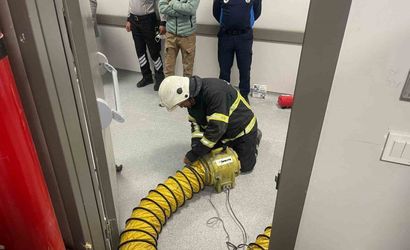 Olay yerine Hatay Büyükşehir Belediyesi'ne bağlı itfaiye ekipleri sevk edildi. Ekiplerin müdahalesiyle panodan çıkan yangın büyümeden söndürüldü ve koridorlardaki duman tahliye edildi.