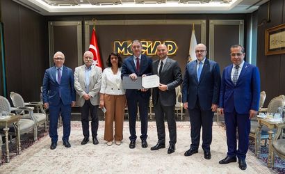 DEM Parti Eş Genel Başkanı Tuncer Bakırhan (ortada), Müstakil Sanayici ve İşadamları Derneği'ni (MÜSİAD) ziyaret etti. Görüşmenin ardından MÜSİAD Başkanı Özdemir (sağ 3), Bakırhan adına düzenlenmiş ve derneğin öğrencilere verdiği bursu temsilen hazırlanan "burs hamilik sertifikası"nı kendisine hediye etti.
