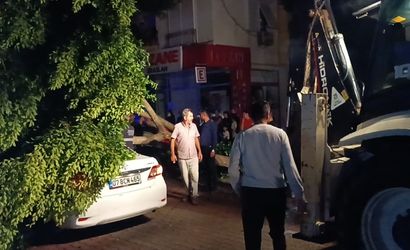 Belediye ve elektrik dağıtım ekipleri, devrilen ağaçların kaldırılması ve kopan tellerin onarılması için çalışma başlattı.