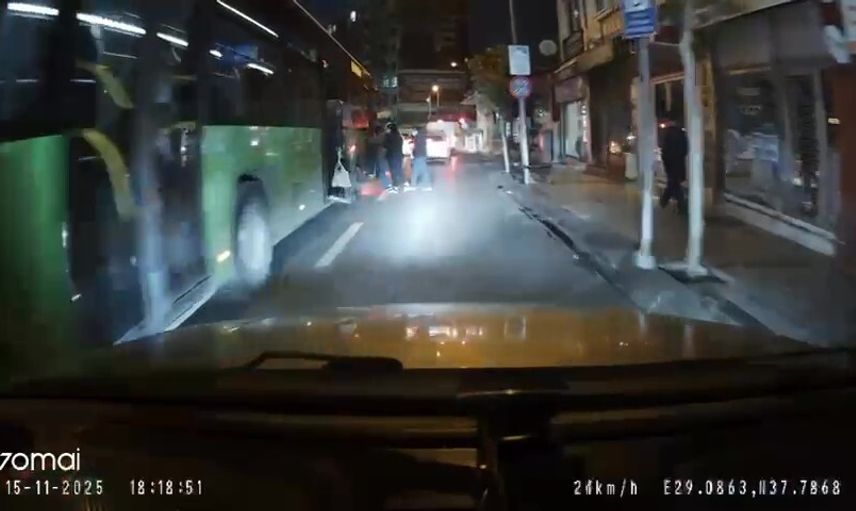Görüntüler, otobüs şoförünün durakta durma zorunluluğunu göz ardı ederek yol ortasında kapı açmasının ne kadar tehlikeli sonuçlar doğurabileceğini bir kez daha gösterdi.