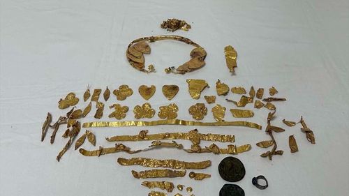 Denizli'nin Sarayköy ilçesinde tarihi eser operasyonunda Helenistik döneme ait altın taç ve eserler ele geçirildi.