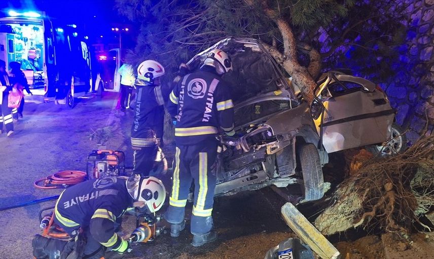 Denizli'nin Merkezefendi ilçesinde ağaca çarpan otomobildeki 2 kişi hayatını kaybetti, 1 kişi yaralandı.
