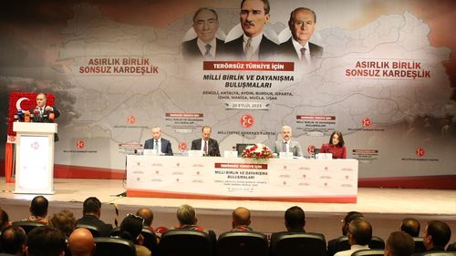 Denizli'de "Terörsüz Türkiye: Asırlık Birlik, Sonsuz Kardeşlik" toplantısı düzenlendiAkçay: MHP 56 yıldır milletin hizmetindeMilliyetçi Hareket Partisi (MHP) Grup Başkanvekili Erkan Akçay başkanlığında gerçekleştirilen "Terörsüz Türkiye: Asırlık Birlik, Sonsuz Kardeşlik" toplantısı, Denizli'de EGS Kongre ve Kültür Merkezi'nde yapıldı. Akçay, partisinin 56…