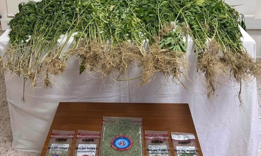 İl Jandarma Komutanlığı tarafından yapılan açıklamaya göre, uyuşturucu madde ile yakalanan şüphelinin adresinde arama yapıldı. Yapılan operasyonda, 343 kök kenevir bitkisi ve 102 gram esrar bulunduruldu.
