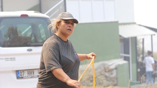 6 Şubat 2023 depremini yaşayan Malatyalı Sevinç ve Eyüp Kaplan, Alanya'daki orman yangınında ekiplere ve mahalle sakinlerine yardım ediyor.