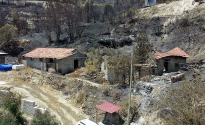 Hatay'ın Karaali Mahallesi'nde iki gün önce çıkan orman yangını, rüzgarın etkisiyle 6 mahalleye yayıldı. Yangın kontrol altına alınırken, soğutma ve hasar tespit çalışmaları sürüyor. Bu kapsamda, Aysel Erbaş'ın depo ve çadırında bulunan tüm eşyaları alevler içinde kül oldu.