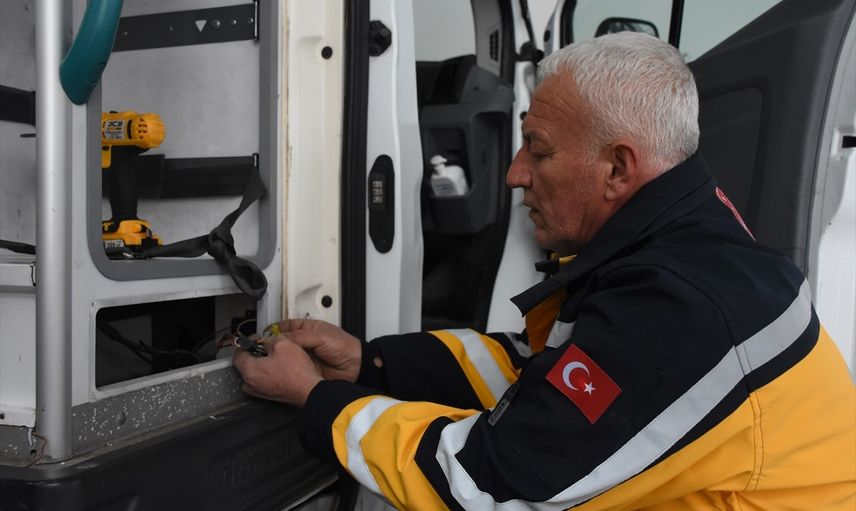 Kahramanmaraş merkezli 6 Şubat depremlerinde evi yıkıldıktan sonra eşi ve 2 çocuğuyla yerleştiği Karaman'da teknikerlik görevini sürdüren 55 yaşındaki Hasan Basri Fırat, 31 yıldır ambulansların bakım ve onarımını yapıyor.