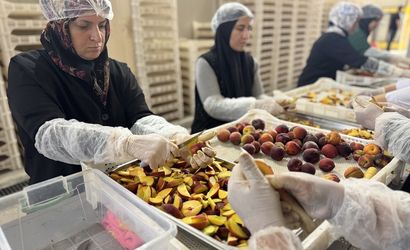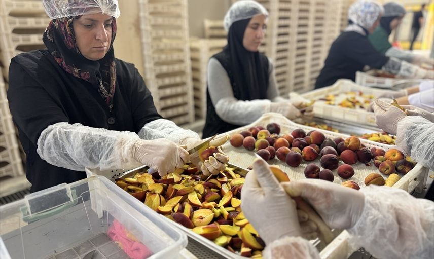 Hatay'da devlet desteğiyle modern hale getirdiği tesisinde meyve ve sebzeleri kurutan depremzede kadın girişimci Zeynep Durak (ortada), ürünlerini çok sayıda ülkeye ihraç ediyor.
