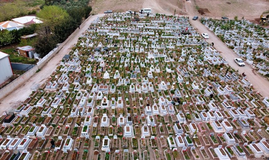 6 Şubat 2023'teki Kahramanmaraş merkezli depremlerden etkilenen Osmaniye'deki mezarlıklarda, aileler afette kaybettikleri yakınlarının kabirlerini Ramazan Bayramı arifesinde ziyaret etti.