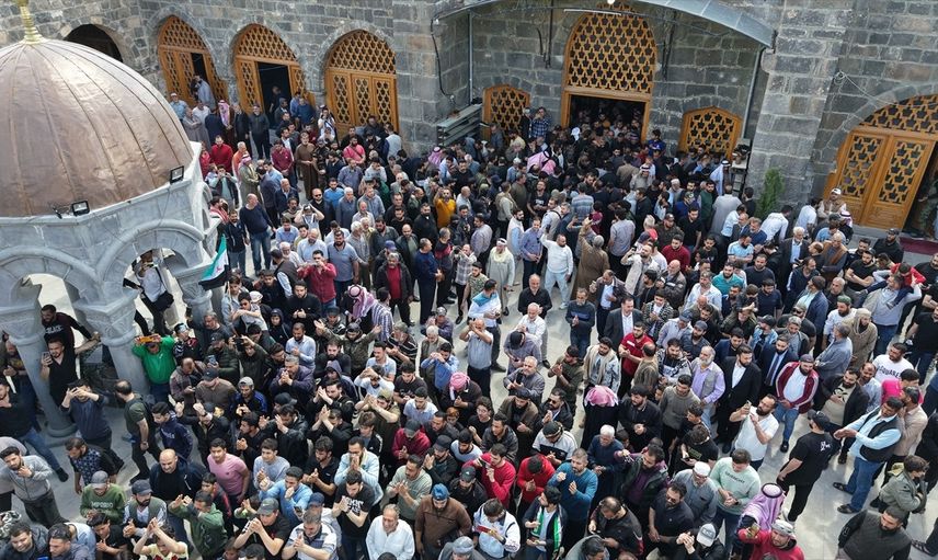 Tören sırasında uçak sesleri duyulurken, cenaze törenine katılanlar İsrail'in Gazze'ye yeniden başlattığı saldırılara da tepki gösterdi. Ellerinde "Barışçılız ancak zayıf değiliz", "Dera ve Gazze... kanımız bir" ve "Kaybedecek bir şeyimiz yok, bizi kışkırtmayın" yazılı dövizler taşıyan Deralılar, Gazze'ye destek sloganları attı.