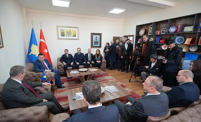 Büyük Birlik Partisi (BBP) Genel Başkanı Mustafa Destici (solda), Kosova'nın tek Türk belediyesi olan Mamuşa Belediyesini ziyaret etti. Ziyarette, Mamuşa Belediye Başkanı Abdülhadi Krasniç (sağda) de yer aldı.