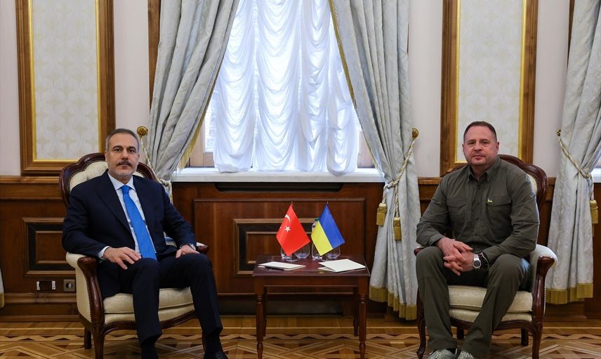 Dışişleri Bakanı Hakan Fidan (solda), Ukrayna ziyareti kapsamında Ukrayna Devlet Başkanlığı Ofisi Başkanı Andriy Yermak (sağda) ile bir araya geldi.
