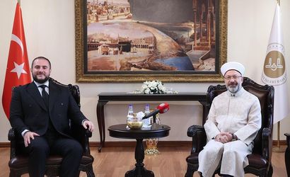 Diyanet İşleri Başkanı Ali Erbaş (sağda), Sırbistan Devlet Bakanı Usame Zukorliç (solda) ile bir araya geldi.