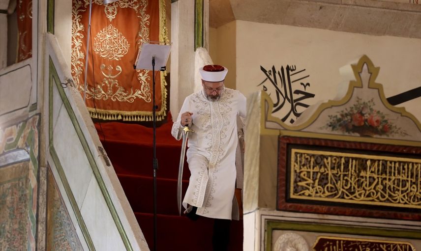 Diyanet İşleri Başkanı Ali Erbaş, Edirne'de Eski Cami'de "Geçmişe İbretle Geleceğe Ferasetle Bakalım" temalı hutbe irat etti, ardından cuma namazını kıldırdı.