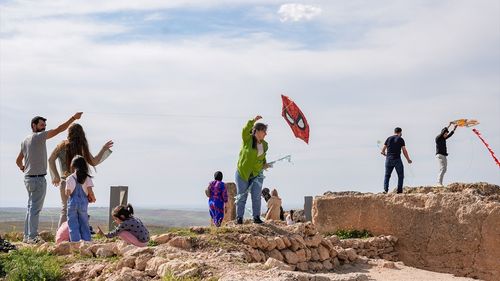 Diyarbakırlı çocuklar, 23 Nisan Bayramı etkinlikleri kapsamında Zerzevan Kalesi'nde uçurtmalarını gökyüzüyle buluşturdu.