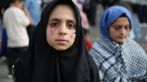 Diyarbakır'da çocuklar, 23 Nisan'da Gazze'deki akranları için destek yürüyüşü düzenledi.