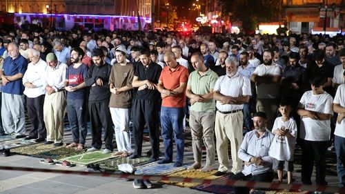 Peygamber Sevdalıları Vakfı öncülüğündeki grup, Dağkapı Meydanı'nda tekbirlerle İsrail'in Gazze saldırılarını protesto etti; Sertaç Tekdal açıklama yaptı ve Gazze için dua edildi.