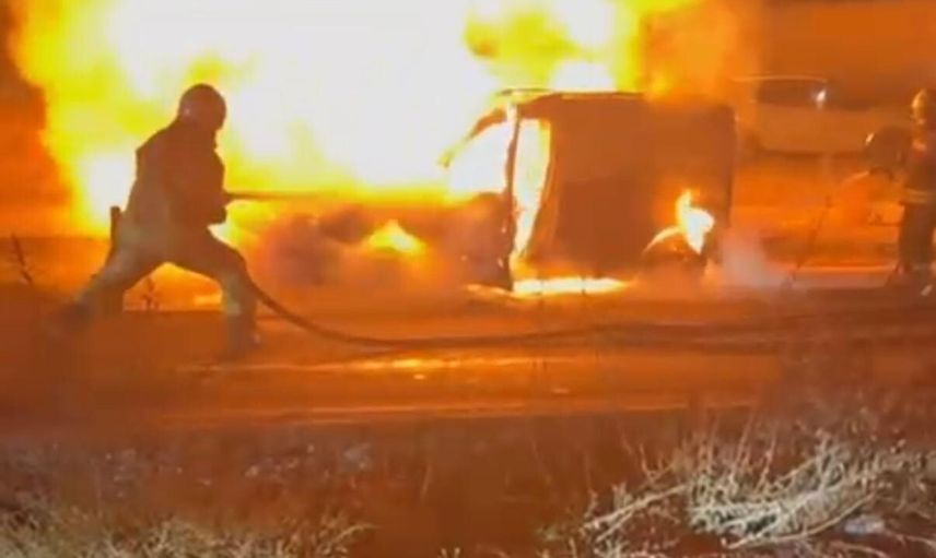 Sürücünün yol kenarına çektiği araç, dakikalar içinde alev topuna döndü. Olay yerine yapılan ihbarın ardından itfaiye, polis ve sağlık ekipleri sevk edildi.