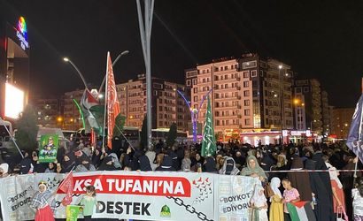 Diyarbakır'da, İsrail'in Gazze'ye yönelik saldırıları protesto edildi. Peygamber Sevdalıları Vakfı'nın öncülüğünde düzenlenen protestoda, diğerleri arasında Kayapınar ilçesindeki bir alışveriş merkezi önünde toplanan kalabalık, Filistin bayrakları taşıyarak tekbir getirdi ve İsrail aleyhine sloganlar attı.