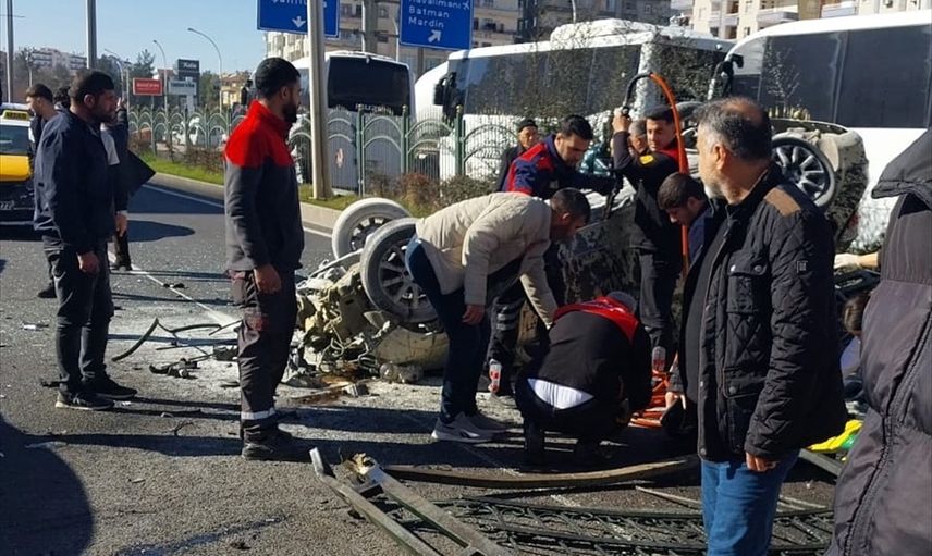 Diyarbakır'da meydana gelen korkunç bir kaza, 4 kişinin yaralanmasına neden oldu. 06 BBL 078 plakalı otomobil, Diyarbakır-Şanlıurfa kara yolunun 15 Temmuz Şehitler Parkı mevkisinde korkuluğa çarparak devrildi.