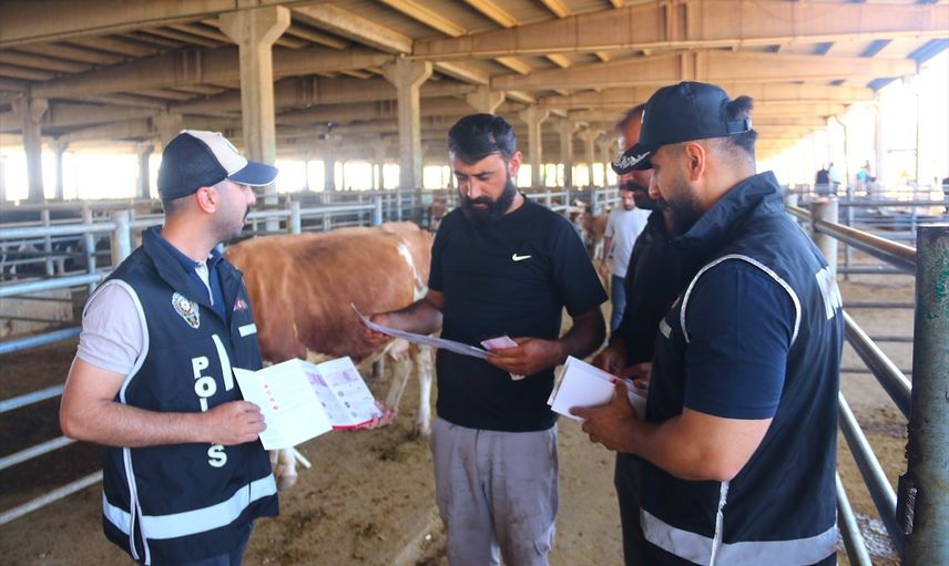 Diyarbakır'da, Kurban Bayramı dolayısıyla hayvan pazarlarını ziyaret eden polis ekipleri, satıcılara sahte para ayırt etme konusunda bilgilendirmelerde bulundu.