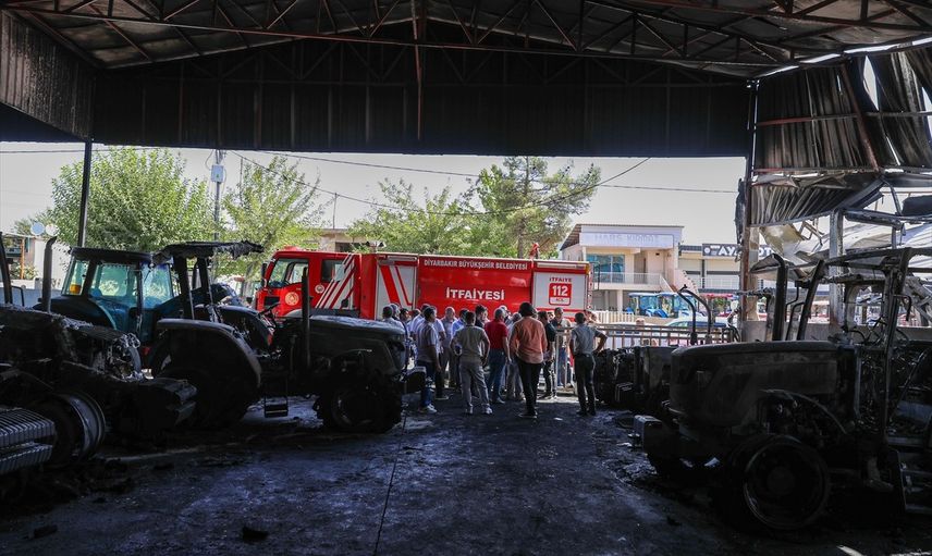 Diyarbakır'da çıkan yangında, 3 iş yeri ve çok sayıda traktör kullanılamaz hale geldi.