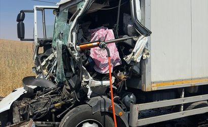 Diyarbakır'ın Silvan ilçesinde meydana gelen kazada, saman yüklü kamyona arkadan çarpan kamyonun sürücüsü yaşamını yitirdi.