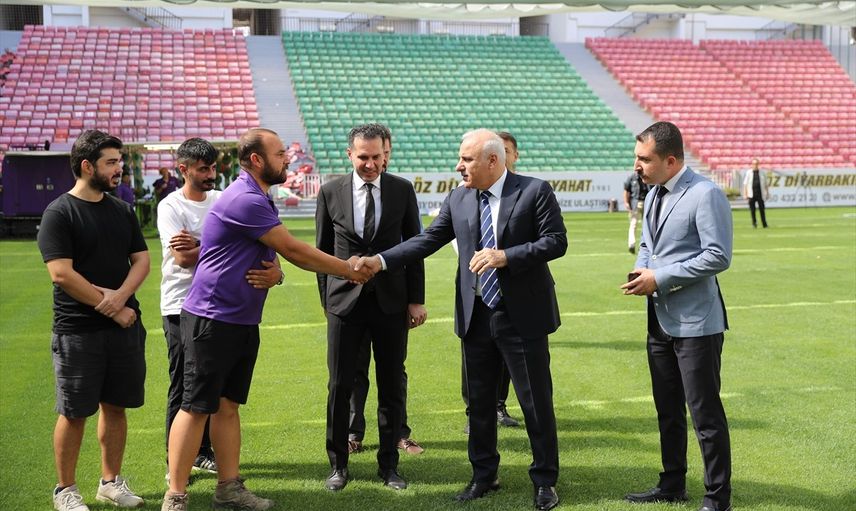 Diyarbakır Valisi Murat Zorluoğlu, zemin yenileme çalışmaları devam eden Diyarbakır Stadı'nda incelemelerde bulundu. Vali Zorluoğlu, yaptığı açıklamada, "İnşallah bir hafta veya 10 gün sonunda burası bütünüyle tamamlanacak ve zemin olarak Türkiye'nin en iyi sahalarından biri haline gelmiş olacak" ifadesini kullandı.