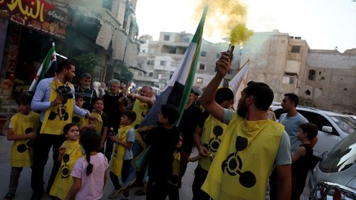 Doğu Guta'da yaklaşık 200 kişinin katıldığı yürüyüşte, 21 Ağustos 2013'teki kimyasal saldırıda hayatını kaybedenler anıldı.