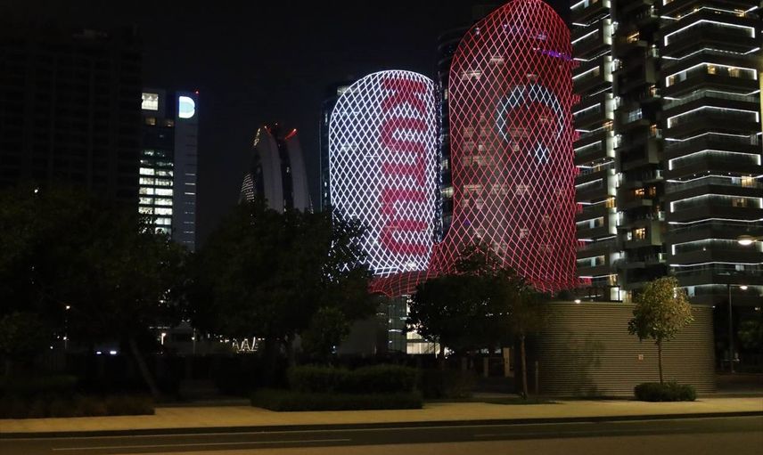 Doha'da sembolik binalar Cumhuriyet Bayramı nedeniyle Türk bayrağı renklerine büründü