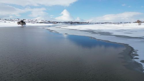 Afyonkarahisar İhsaniye'de donan Emre Gölü, eksi 7 derece sıcaklıkla Frig Vadisi'ndeki tarihi eserlerle kartpostallık görüntüler oluşturdu.
