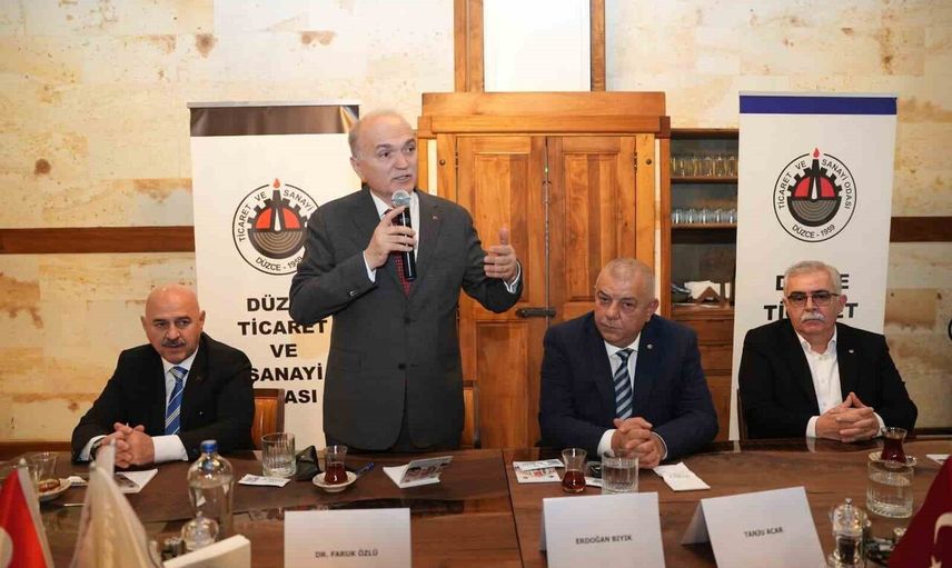 Düzce Belediye Başkanı Dr. Faruk Özlü, dünya ve Türkiye ekonomisinden örnekler vererek Türkiye’nin bölgesel bir güç olduğuna işaret etti ve gücün korunması ile gelişmenin tek yolunun daha çok çalışmak olduğunu vurguladı.