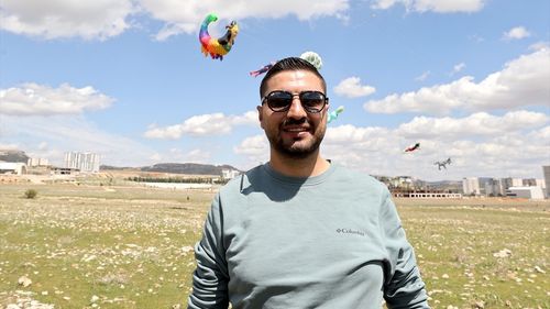 Sultan Kösen, Mardin'deki uçurtma şenliğinde Guinness Rekorlar Kitabı'nın logosunu taşıyan uçurtmalarla gökyüzünü renklendirdi.