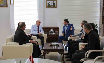 Ardından yönetim, Düzce Belediye Başkanı Dr. Faruk Özlü'yü ziyaret ederek tebriklerini iletti; ziyaret sohbet havasında sürdü.
