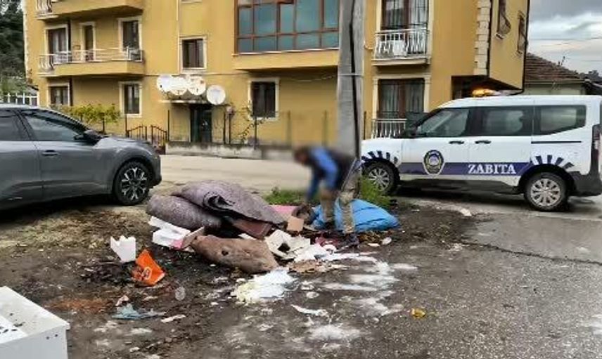 Düzce Belediyesi ekipleri, çöplerini sokağa bırakan şahsa hem idari ceza uyguladı hem de atıkları temizletti.