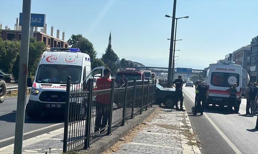 Çarpışmanın etkisiyle savrulan otomobil, refüjdeki demir korkuluklara çarptı.